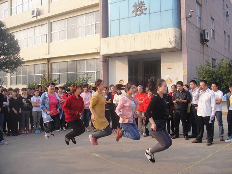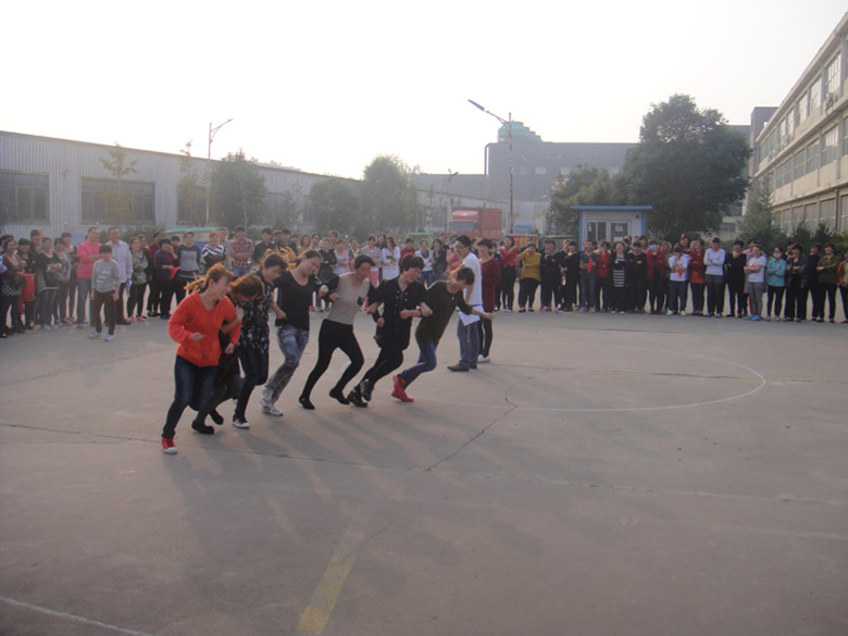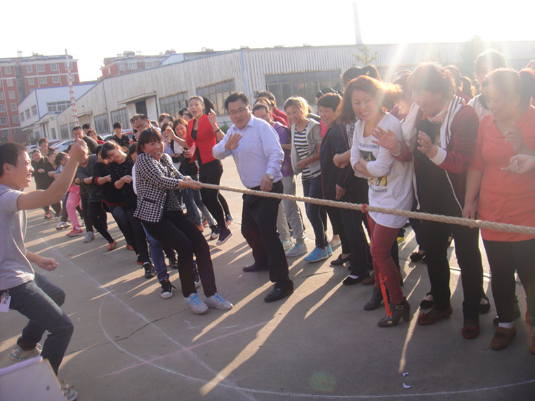 2014年10月22日,公司組織舉辦了2015趣味運動會,這是我司成立以來第二次舉辦該類活動,活動設置了拔河、集體跳繩、滾雪球、協(xié)力競走、綜合接力五個項目。按工序分組參加比賽,廣大員工積極參加,累計251人次參加活動,占全員比例的78%。根據比賽規(guī)則決出冠、亞、季軍共105人次,占全員比例的33%。趣味運動會圖片如下:
